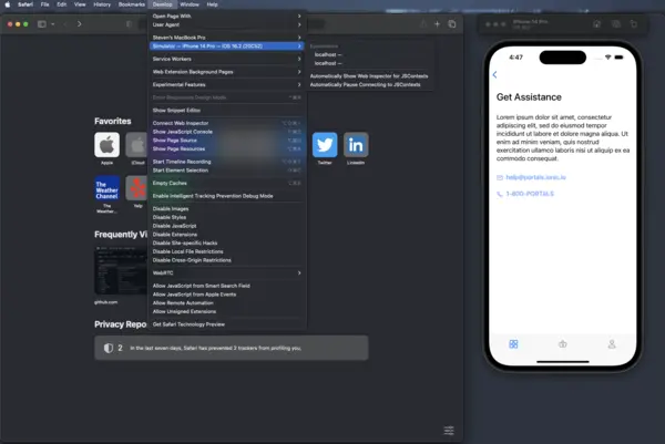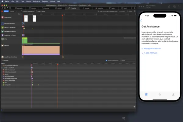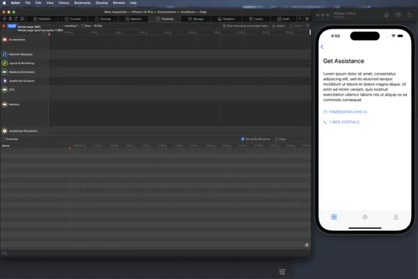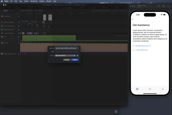 Profiling your web applications is just as important as profiling your native applications. In order to profile your web applications running inside of Portals, you need to open Safari.
