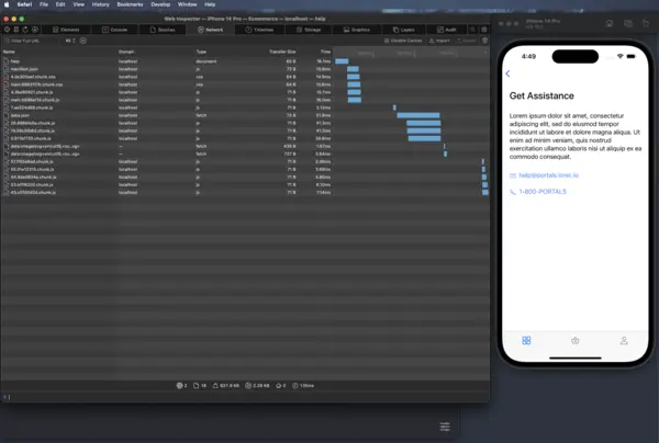 Most of the data in the network tab is likely going to be a combination of html, css, and js. The data points for these bits is likely not going to be of much interest since all of these files are loading from disk and should not take long to load. However, if your web team is not using the CapacitorHttp plugin and any network requests occur in your page interactions, you will see those network requests in this tab as well.